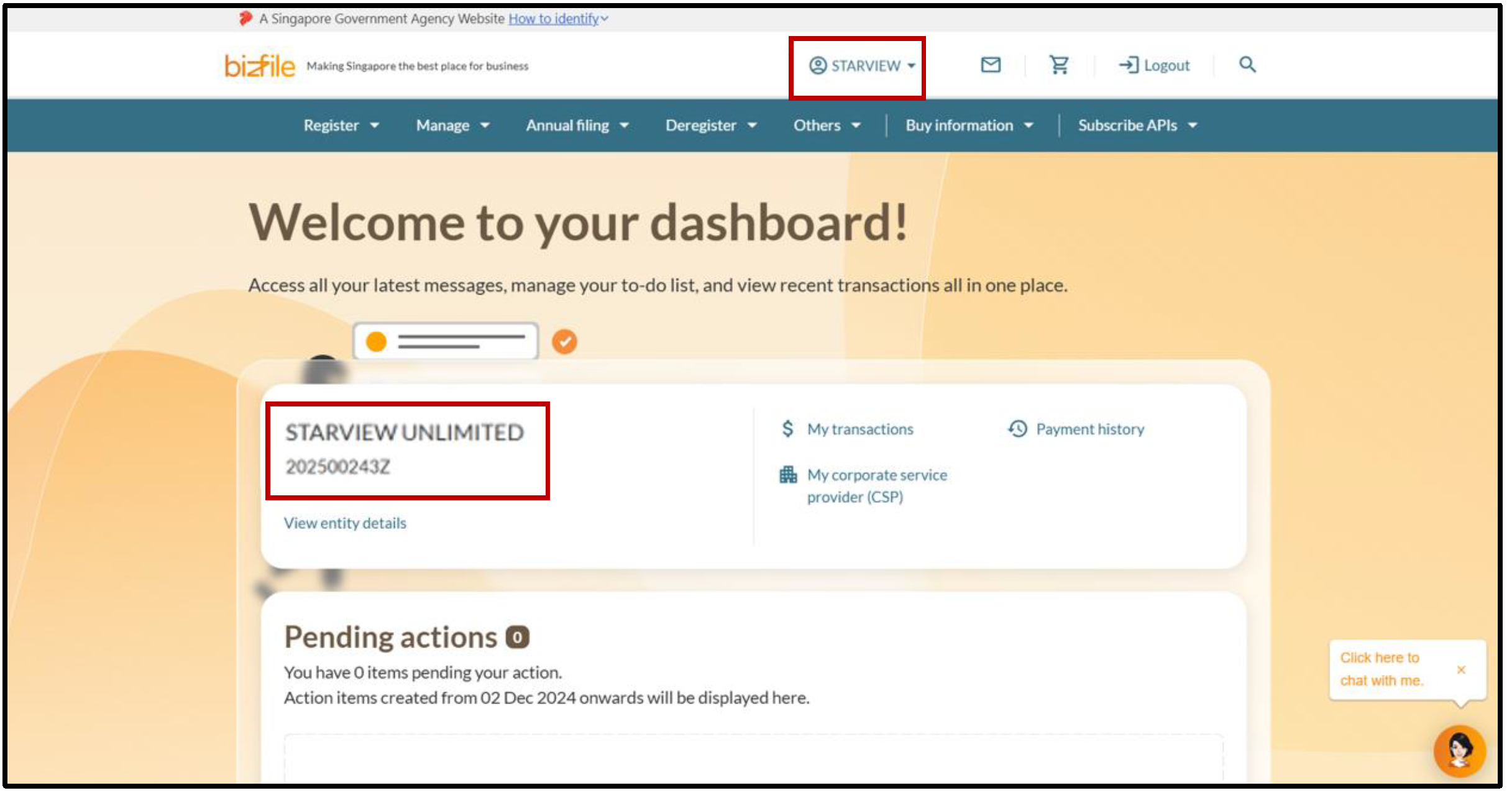 Step 1: Log in to Bizfile and open the "Apply to strike off business entity" eService