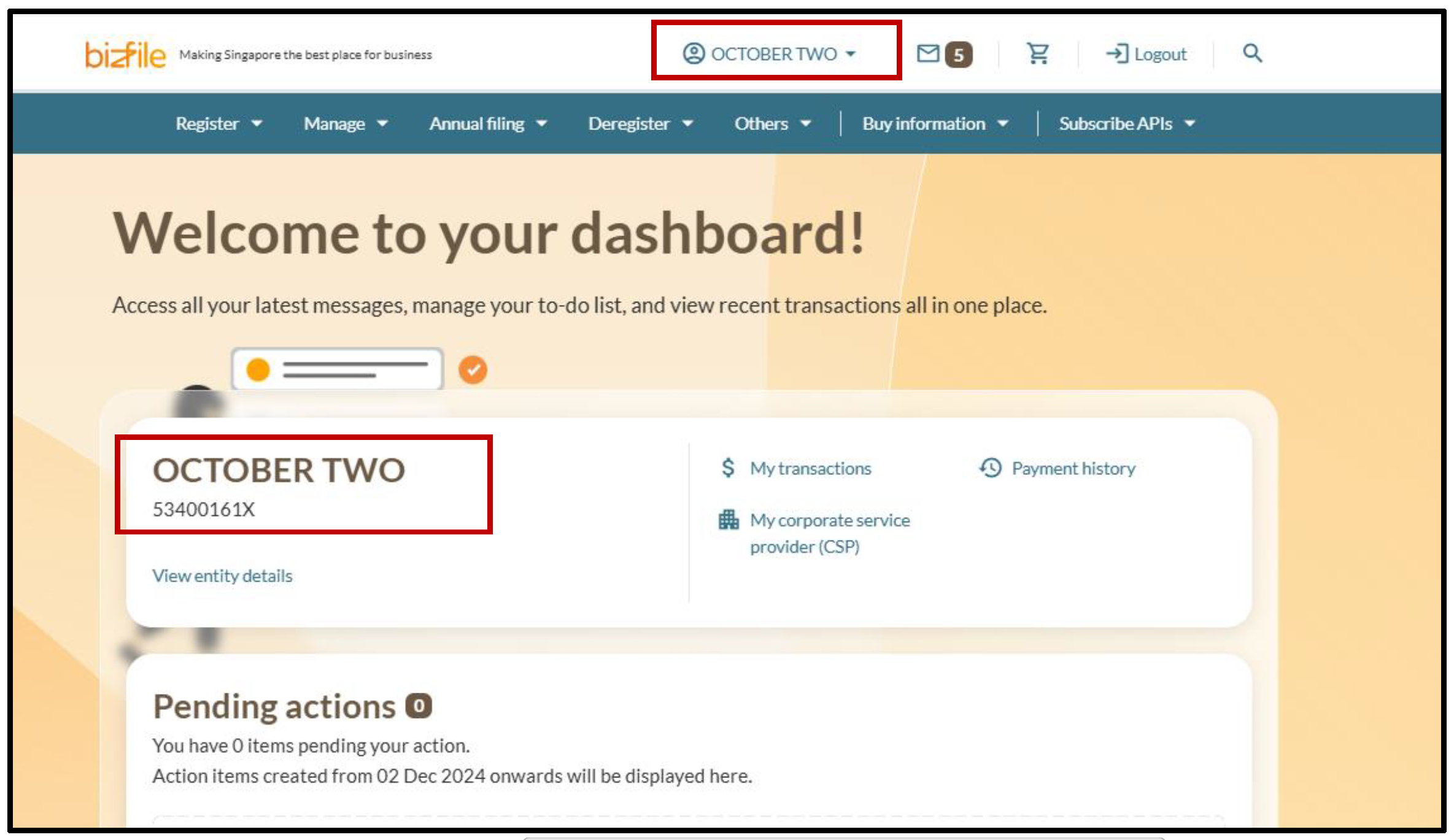 Note: All entity and personal information (including UEN, entity details, NRIC or FIN numbers, names and addresses) shown are dummy data for illustration purposes only.