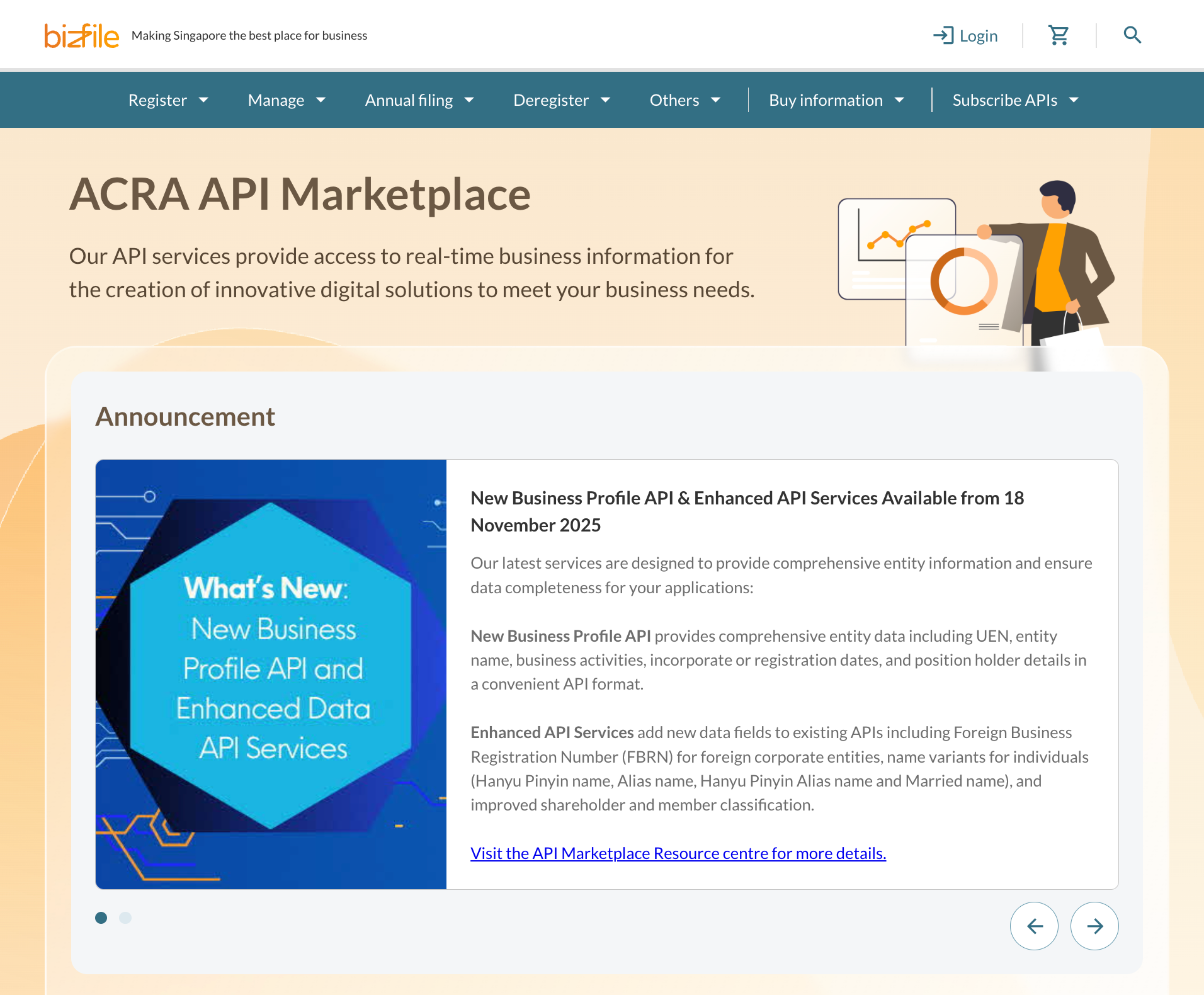 ACRA launched the ACRA API Marketplace on 26 May 2024. It provides a more secure, scalable and efficient way to access API services.