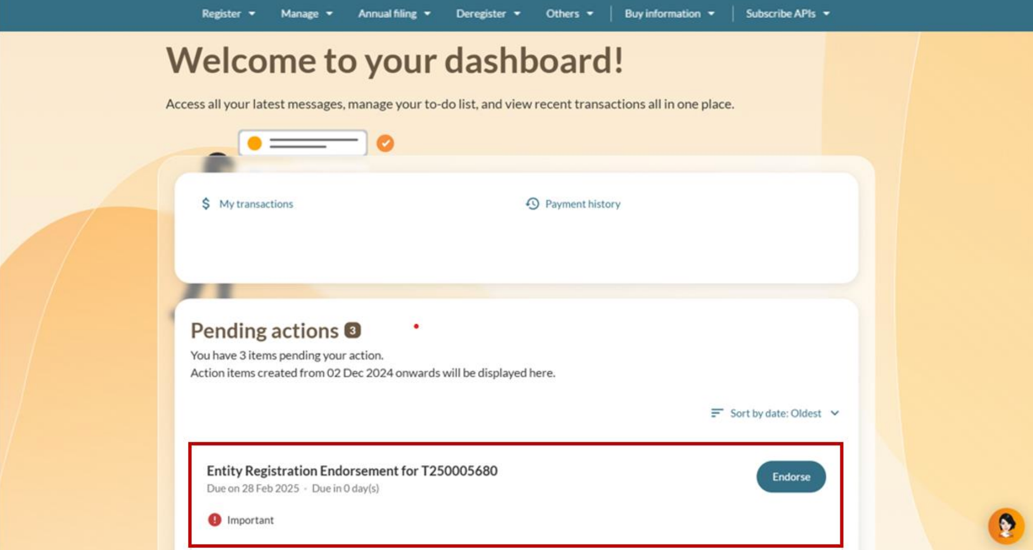 Position holders and shareholders need to endorse their roles in a new entity within 60 days. This applies unless a corporate service provider (CSP) or Group of Companies filed the registration.