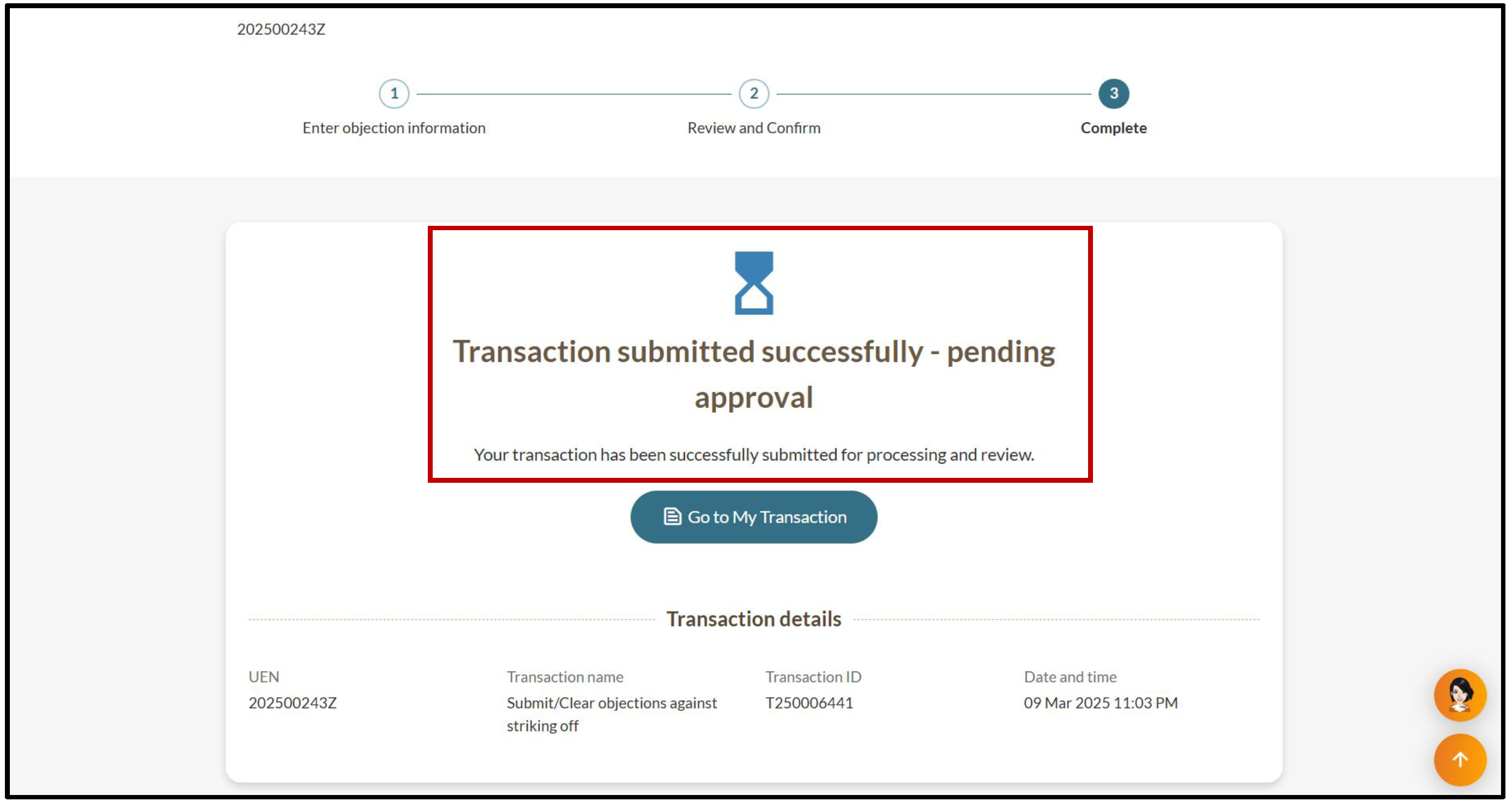 Review by ACRA | While we review the objection, we may request additional documents or information (clarifications) from the objector via Bizfile. Please respond promptly to avoid delays. More details: Checking alerts and notifications from ACRA |
